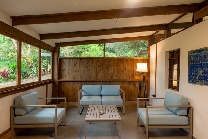 Sala de eventos de 50 metros cuadrados, equipada con sillones, mesas, cojines. 200 hectáreas de bosque de conservación y biodiversidad. Senderos privados Lago Pozas en el rio Diferente espacios privados Inmersión profunda en el bosque